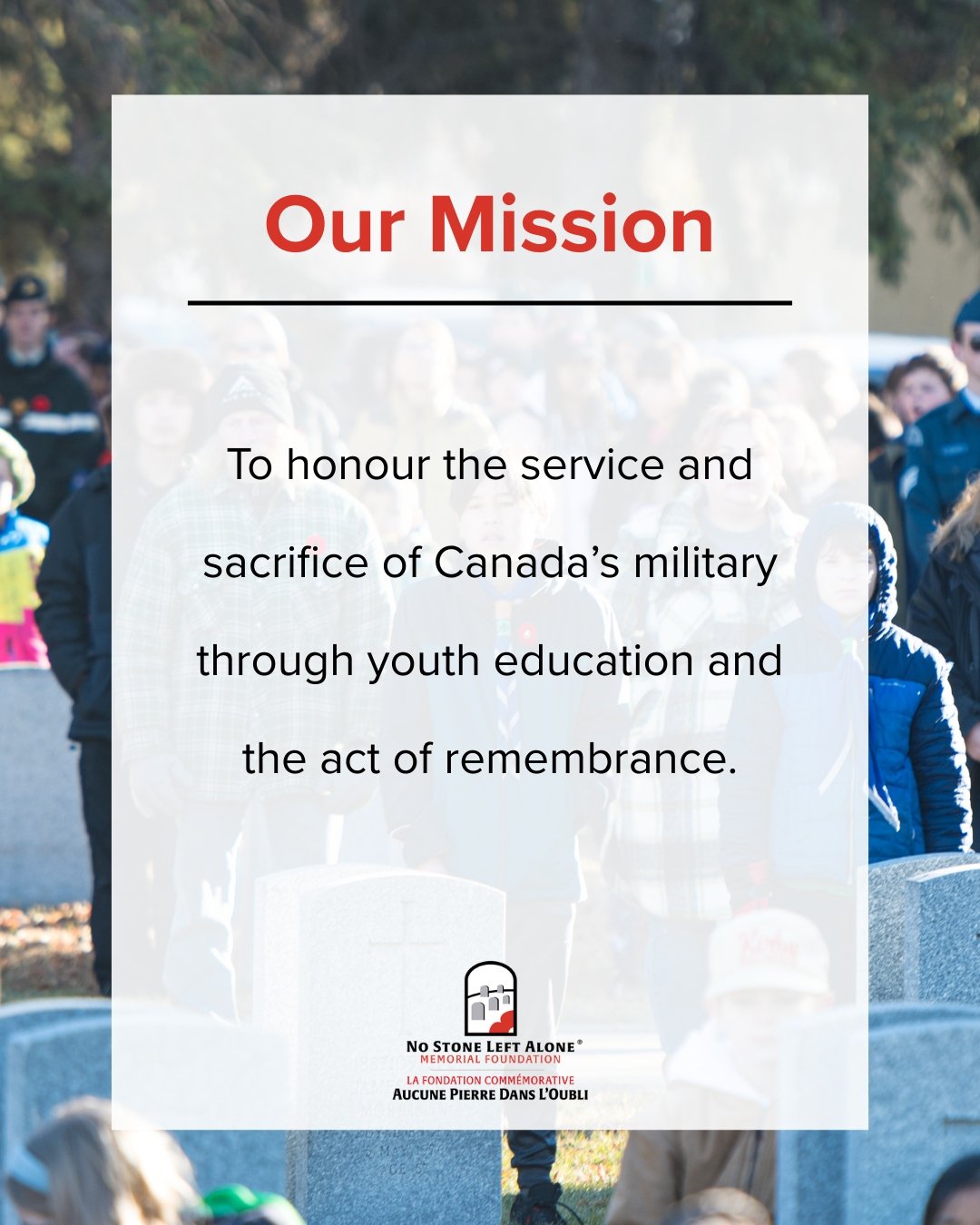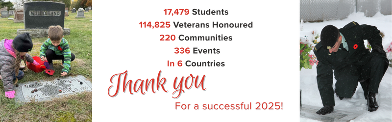 OUR MISSION: To honour the service and sacrifice of Canada’s military by educating and inspiring youth to place poppies on veterans’ headstones. Learn more…