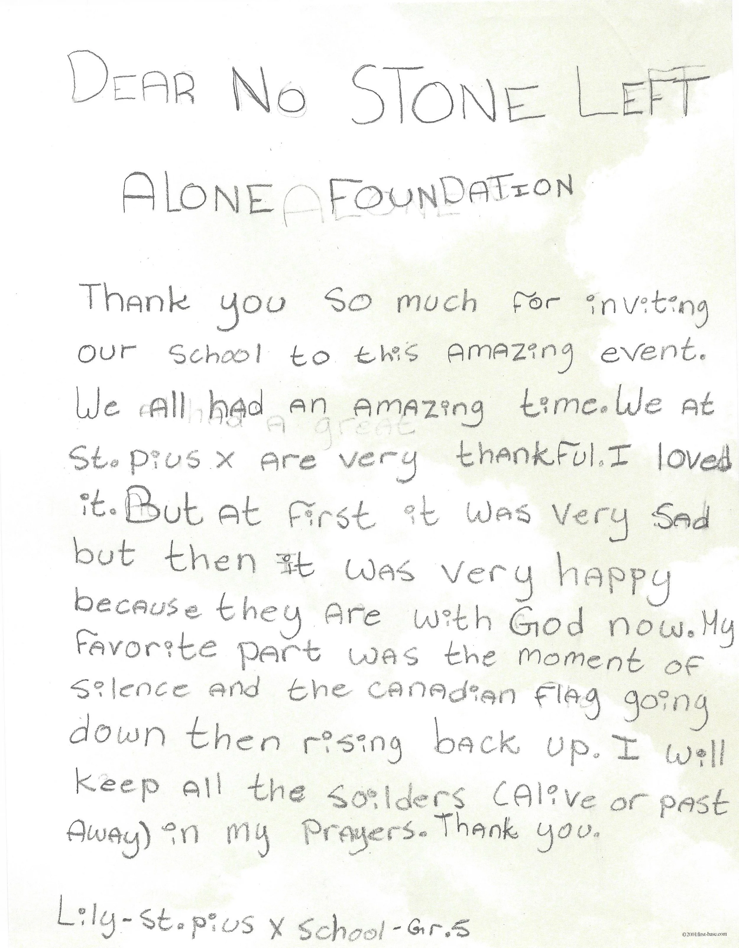 Read about our 150 Days of Reflection to celebrate Canada's 150th birthday. No Stone Left Alone appreciates your support and donations to help make a difference.